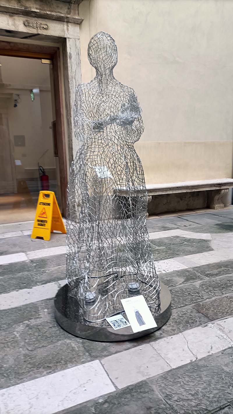 All works are equipped with a QR code located at the base of the sculpture. Framing it with your mobile phone opens the link that allows you to explore more one of the historical figures of Venice, which I described above. When you open the link, you need to frame the work, and a real character will appear and speak to you, telling you the details of his/her story. A true stroke of genius, which gives the visitor a truly immersive experience. An exhibition that talks about the past, with the technologies of the future.