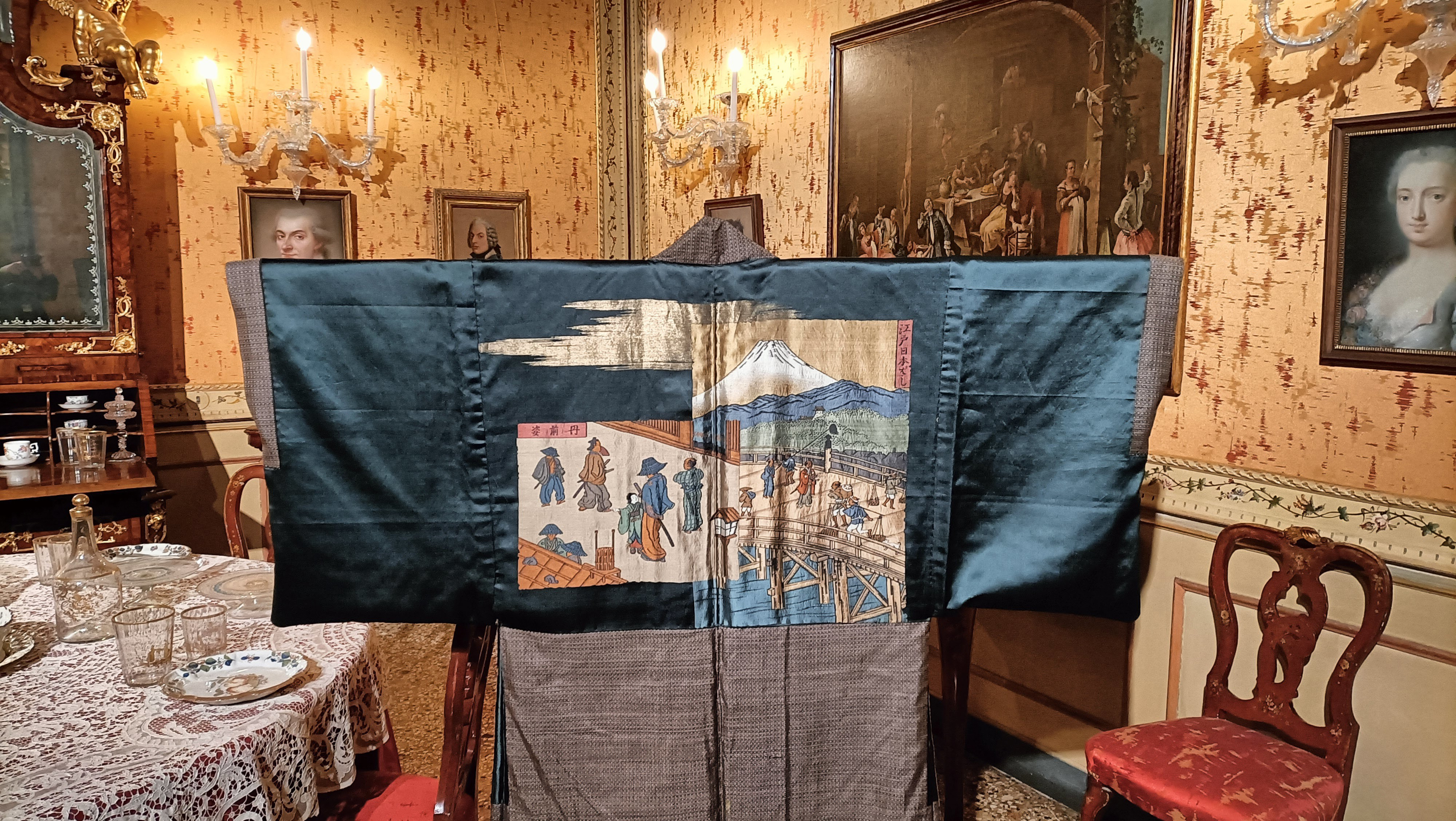Stepping into Palazzo Mocenigo during the exhibition dedicated to the men’s kimono feels like entering a slower rhythm. Time softens. The fabrics speak quietly, but they have so much to say. These are not simply garments: each kimono holds stories, symbols, desires, and inner worlds.