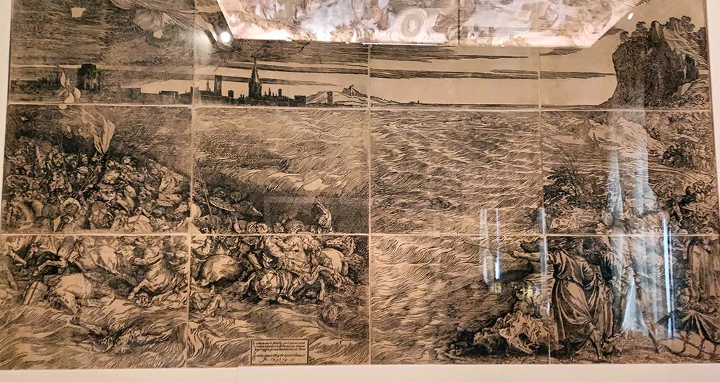 The exhibition is located on the first floor, in the Tapestry room, in the Throne and Portego rooms. The exhibition is nothing short of stupendous, with many very important works, suffice it to say that there are works by Jacopo De Barbari and Albrecht Dürer, and for this reason alone it is worth visiting! As you know, Jacopo De Barbari is famous for his famous bird’s eye view of Venice: Imagine flying over the Serenissima at dawn in the 16th century. The canals shimmer under the first rays of the sun, the gondolas glide silently, the buildings overlook the lagoon majestically. Imagine being able to observe every detail of this magical city, from the roofs of the houses to the secret courtyards, from the moored boats to the squares teeming with life. All this is possible thanks to the extraordinary woodcut by Jacopo de’ Barbari, known as the “View of Venice” and created in 1500. A monumental work, engraved on six pear wood panels, which offers a bird’s eye view of Venice with a precision and level of detail never seen before. Behind this perspective map lies real teamwork. Jacopo de’ Barbari, probably assisted by experts in cartography and drawing, oversaw the creation of the view, while the German merchant Anton Kolb financed the work and took care of its printing and diffusion. The “View of Venice” is not only a work of great cartographic value, but also a true Renaissance masterpiece. The city is represented with a wealth of detail and attention to perspective that leave you speechless. You can see churches, palaces, canals, bridges, boats, people and even animals, offering a lively and realistic representation of daily life in sixteenth-century Venice. But in any case there are many other very interesting works, ranging from religious subjects or taken from Greek mythology.