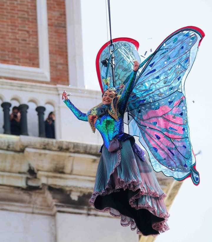 The exhibition is not just an opportunity to see a series of magnificent photographs; it is a complete immersion into the magic that captivates millions of visitors every year. Imagine standing in Piazza San Marco, beneath the Campanile, as the “Volo della Maria/volo dell’angelo” (Flight of the Maria flight of the angel) comes to life—one of the most enchanting traditions of Carnival. The protagonist, the Maria of the year, jumps from the campanile wearing a one-of-a-kind costume created especially for her by Nicolao. Every year, a new theme, a creation that celebrates the beauty and courage of the woman who takes flight like a queen capturing the heart of the city.